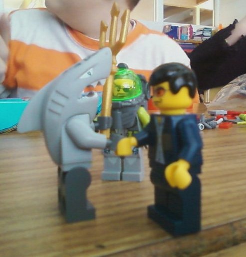 Then I met Lego Sharkman, who apparently owns the gingerbread house. I taught him the secret Lego handshake.